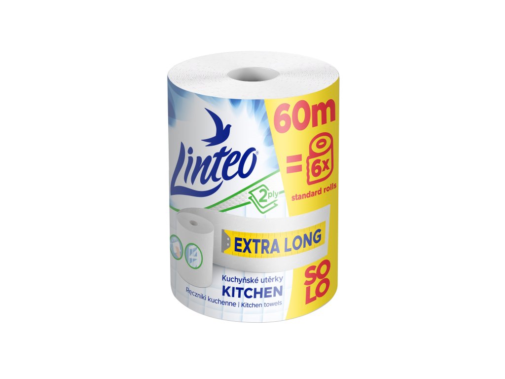 Dvouvrstvé bílé papírové kuchyňské utěrky Linteo Extra long představují praktického pomocníka pro každodenní úklid. Jedna role s návinem 60 metrů odpovídá pěti běžným rolím, takže šetří nejenom vaši peněženku, ale také čas a prostor doma. Vyrobeny ze 100% celulózy jsou pevné, savé a bezpečné pro kontakt s potravinami. Balení obsahuje jednu roli o návinu 60 metrů.